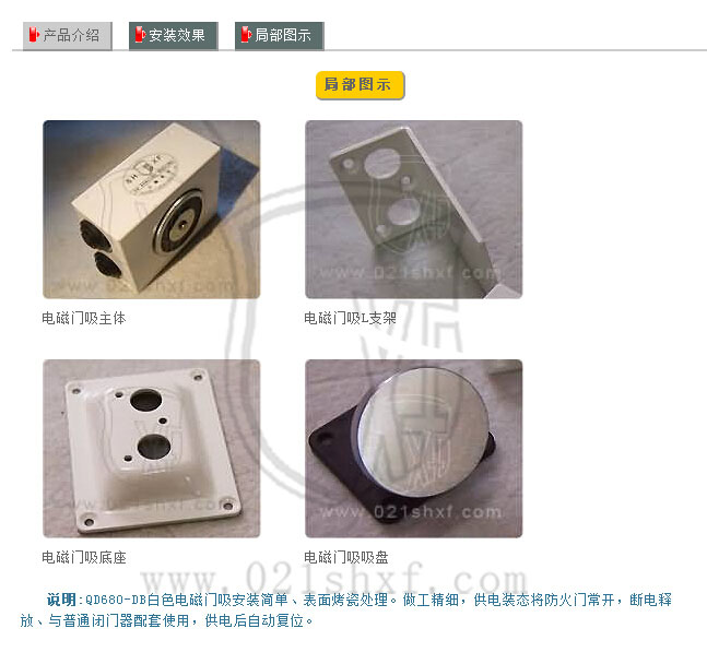 如果是雙開門使用需要加裝順位器或通過閉門器使先調整好閉門順序達到適放后防火門閉合到位。 要求防火門手動釋放或聯動釋放后均通反饋信號至控制中心必須事先布4芯線至電磁門吸安 裝的位置。