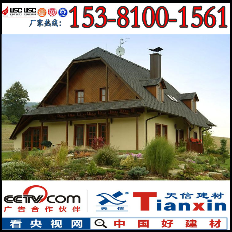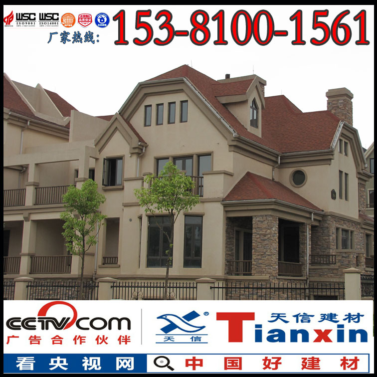 瀝青層能長時間的抵御風雨侵蝕,保護屋面不受潮濕影響。天信牌多彩玻纖瓦采用的是全天候改性瀝青,相比其余配比瀝青,改性瀝青含油量高,含脂量低,使得抗變形能力和感溫性能更加優越,使產品不易脆,具有更好的抗高溫和抗低溫性能,可有效提高抗老化能力。