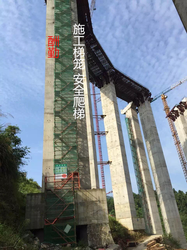 8.為保證施工人員安 全,立桿上每隔495需安 裝橫桿,梯子兩邊均安 放扶手,另外安 全梯的斜桿也要四面安 放,以加強整架的穩定性。9.安 全爬梯每隔1.5米安 放一張帶踏步z字形樓梯,每隔4-5米需安 置扣墻件,***大搭設高度為99米。