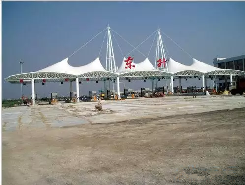 膜結構又叫張拉膜結構,膜結構建筑是21世紀最具代表性與充滿前途的建筑形式。打破了純直線建筑風格的模式,以其獨有的優美曲面造型,簡潔、明快、剛與柔、力與美的完美組合,呈現給人以耳目一新的感覺,同時給建筑設計師提供了更大的想象和創造空間。膜結構是由多種高強薄膜材料(pvc或teflon)及加強構件(鋼架、鋼柱或鋼索)通過一定方式使其內部產生一定的預張應力以形成某種空間形狀,作為覆蓋結構,并能承受一定的外荷載作用的一種空間結構形式。膜結構可分為充氣膜結構和張拉膜結構兩大類。充氣膜結構是靠室內不斷充氣,使室內外產生一定壓力差(一般在10㎜~30㎜水柱之間),室內外的壓力差使屋蓋膜布受到一定的向上的浮力,從而實現較大的跨度。張拉膜結構則通過柱及鋼架支承或鋼索張拉成型。