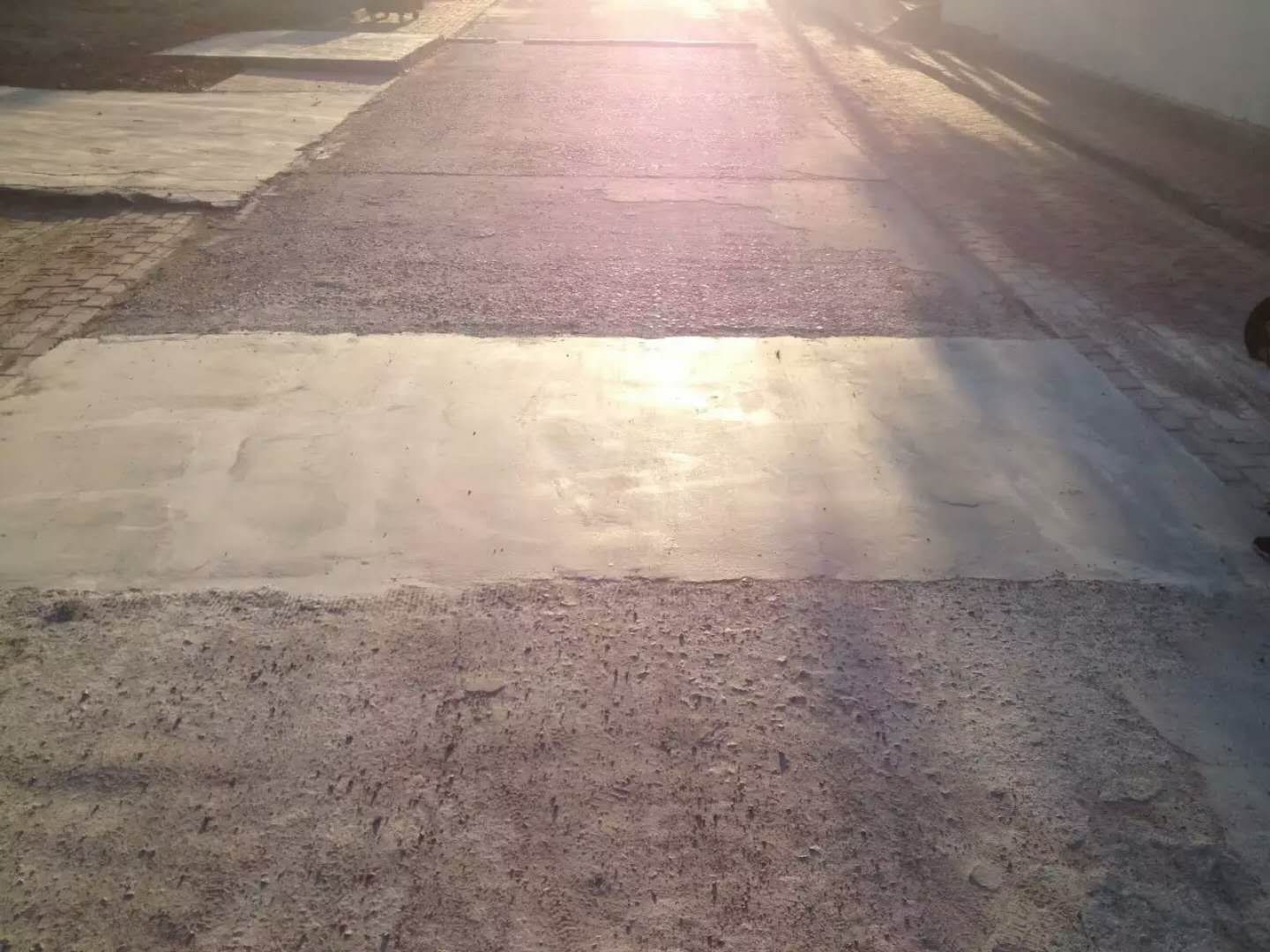 好多的廠區(qū)路面都是用混凝土修補料修好的,如果你去一個廠里他的地面花里胡哨的,肯定是用我們的材料修過,我們的材料正常硬化后的顏色稍微比水泥顏色深一些,所以修補的區(qū)域能看出來,除非我們大面積覆蓋。