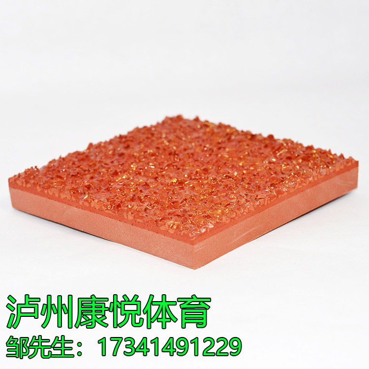 1、色彩:專用聚氨酯顆粒,表面顏色柔和,顆粒狀表層,防止耀眼刺眼陽光的反射,美觀耐久,并可采用多色彩搭配。