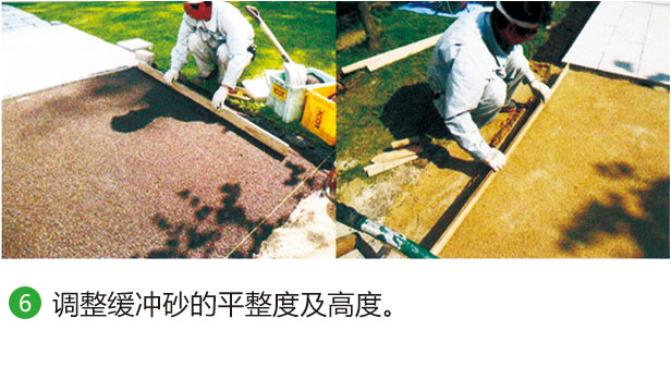 5、壓實緩沖砂,使用滾壓機30-40m/分左右,壓3-5次,壓實后緩沖砂厚度為35mm