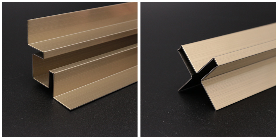 不銹鋼線條制作是通過剪切、折彎、加工等多道繁鎖工序制作,安 裝起來很方便,香檳金色不銹鋼包邊線條是在相同或不同材質之間的平面銜接部分安 裝的條狀材料,香檳金色不銹鋼包邊線條電視背景墻多寬,例如地板和踢腳線之間、地板和地磚之間,瓷磚與瓷磚之間,樓梯口收邊收口,天花板之間等。因為不同材質的膨脹率不同,扣條蓋在接縫上可以為這種差異提供余量,防止拱翹,不銹鋼裝飾線條,也起到收邊收口美化作用。安 裝時,下料切割后只需用螺栓和插接件固定在墻上即可,本型材與傳統(tǒng)木制踢腳線相比,更加美觀牢固,綠色環(huán)保,而與傳統(tǒng)工藝制作的香檳金色不銹鋼包邊線條相比,價格低廉,安 裝方便。