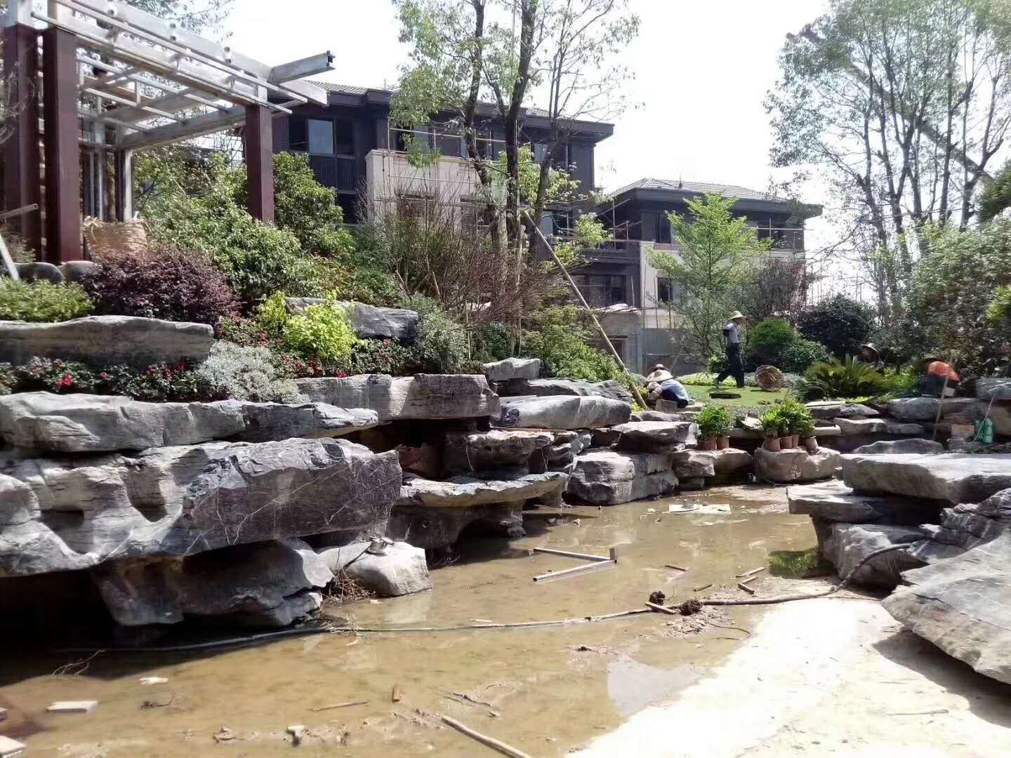 太湖石:又名窟窿石、假山石,是由石灰巖遭到長時間侵蝕后慢慢形成的,分有水石和干石兩種,姿態萬千,通靈剔透的太湖石。一般用于假山流水、溪流、人工湖駁岸、草坪點綴等!