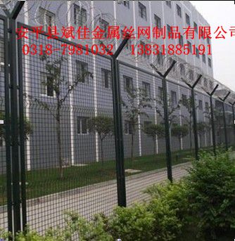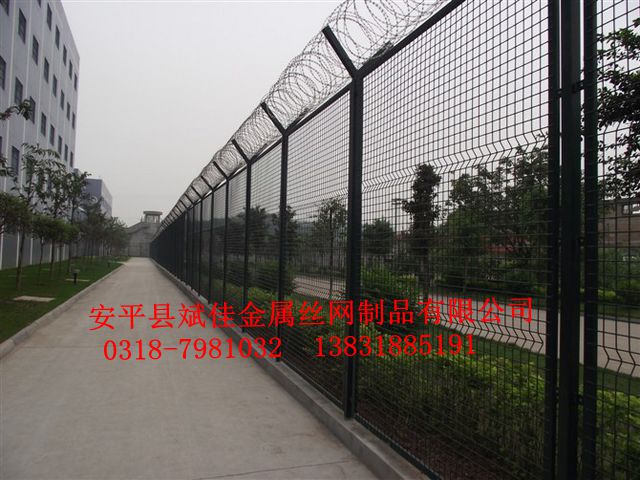 飛機(jī)場護(hù)欄網(wǎng),監(jiān)獄防護(hù)網(wǎng)等都被稱為高安全防護(hù)網(wǎng),是機(jī)場,監(jiān)獄,廠區(qū),軍事基地最常用的隔離網(wǎng)。我廠生產(chǎn)的這種高安全圍網(wǎng)全部采用低碳鋼絲和y型鋼管組成,使用壽命在10-15年之間。y型柱上面都可架刀刺網(wǎng),刀刺網(wǎng)分為兩種一種為不銹鋼刀刺網(wǎng)這種最短10年不生銹,還有一種是熱鍍鋅刀刺網(wǎng),這種一般在3-5年就生銹了,一般監(jiān)獄和飛機(jī)場均用不銹鋼刀刺網(wǎng)。