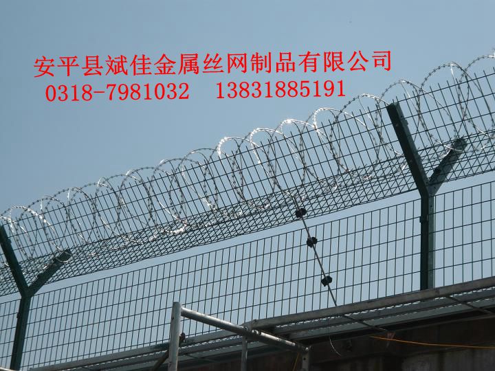 飛機(jī)場(chǎng)防護(hù)網(wǎng)是我們所說(shuō)的高安全防護(hù)網(wǎng),是一種采用由v型支架立拄,加強(qiáng)型焊接片網(wǎng),安全防盜連接件和熱鍍鋅刀片刺籠組成強(qiáng)度和安全防御性級(jí)別很高,又稱作“y型安全防御護(hù)網(wǎng)”。近年來(lái),被廣泛應(yīng)用在機(jī)場(chǎng),軍事基地等高安全場(chǎng)所。