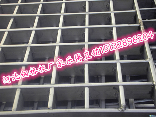 熱鍍鋅鋼格柵板是由負載扁鋼和橫桿按一定間距經緯排列,在高壓電阻焊機上焊接而成原板,經切割、切口、開孔、包邊等工序深加工而成客戶要求的成品。
