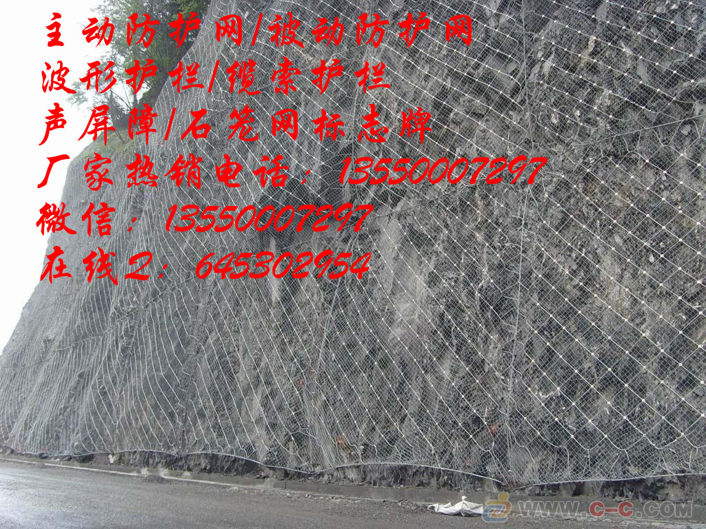 主動網主要通過系統作用把防止落石滑落或者把落石控制在一定范圍內,廣泛用于高速公路邊坡防護,國省干道邊坡防護,山區公路邊坡防護,地震多發地段,易發泥石流等地,水電站,礦山,景區,隧道口,鐵路沿線等山體邊坡防護作用。