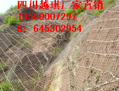 落石塊體較小且壽命要求較短時采用。備注:單層鋼絲格柵網,錨桿長度一般2m-3m,抗拔力不小于50kn ger2型主動防護網 網型: so/2.2/2.25*10.2支撐繩:φ16系統鋼絲繩錨桿+φ12橫向支撐繩 縫合繩:用≥φ2.2鐵線縫合 主要防護功能:坡面加固,抑制崩塌和風化剝落,溜塌的發生,限制局部或少量落石運動范圍。危石塊體較小且壽命要求較短時采用。備注:單層鋼絲格柵網,錨桿長度一般2m-3m,抗拔力不小于50kn gtc-65a型主動防護網 網型:tc/65支撐繩:預應力鋼筋錨桿+孔口凹坑,根據需要選用邊界支撐繩和鋼絲繩錨桿 縫合繩: φ8 主要防護功能:坡面加固,抑制崩塌和風化剝落,溜塌的發生,限制局部或少量落石運動范圍,有小塊落石或上質邊坡時選用。能滿足可達100年的防腐壽命要求,但其加固能力僅為70%-80%左右,不適于體積大于1m3的大塊孤危石。備注:單層高強度鋼絲格柵網gtc-65b型主動防護網 網型:tc/65 支