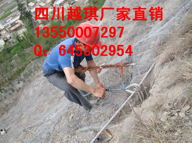 rx型(菱形網):鋼立柱+上下支撐繩(減壓環)+錨桿+拉錨繩(減壓環)+菱形網(鋼繩網)+鐵絲格柵網