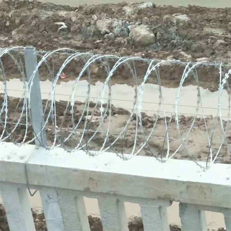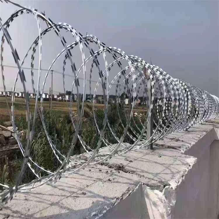 刀片刺繩也稱為刀片刺絲、刀片刺網,是一種新型防護網。刀片刺繩具有美觀、經濟實用、防阻效果好、施工便利等優異特點,目前,刀片刺繩已被廣泛應用于許多國家的工礦企業、園林公寓、邊防哨所、軍事領域建筑物和其他國家的安 全設施。