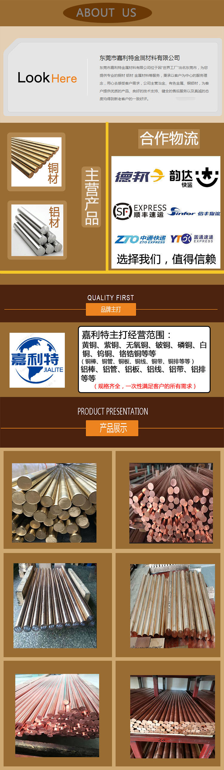 東莞市嘉利特金屬材料有限公司位于因“世界工廠”出名東莞市,為您提供專業的銅材 鋁材 金屬材料等服務,秉承以客戶為中心的服務理念,用心去感受客戶需求,公