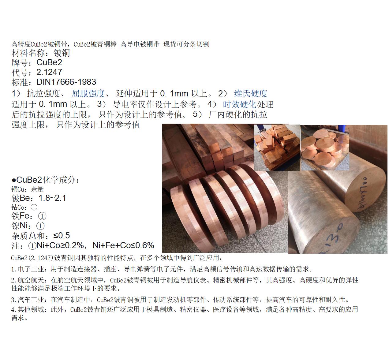 | C17460 - 390 - HT鈹銅帶由于其優異的性能,在多個領域有著廣泛的應用。 |
