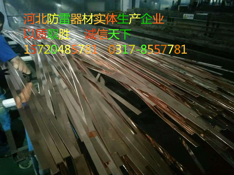 2、銅包鋼扁鋼防腐蝕性優越:復合介面采用高溫熔接,無殘留物,結合面不會出現腐蝕現象;表面銅層較厚(平均厚度大于0.3mm)耐腐蝕性強,使用壽命長(大于30年),減輕檢修勞動強度。