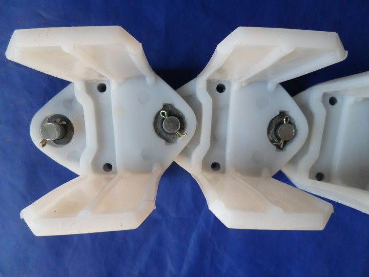 采煤機用電纜夾板重量輕、體積小、結構緊湊,安 裝方便快捷,維護維修簡單,且使用壽命長,抗拉強度、抗沖擊力大等。其優點是內襯鋼骨架承載拖曳力,保護電纜或水管不受外力作用,尼龍66中添加阻燃、抗靜電等助劑 ,具有阻燃、抗靜電作用。相鄰電纜夾易于連接,根據采煤機工作面需要可以任意延長,在拖曳過程中保護電纜或水管可靠工作,不被折斷或破損,提高生產效率,降低維護維修成本