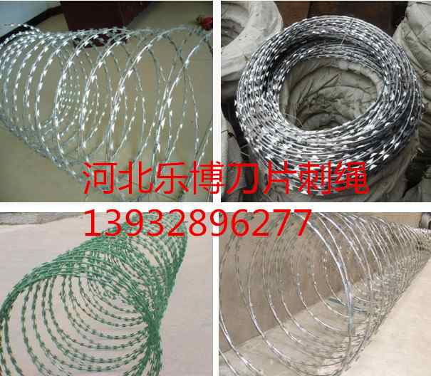 監獄刀片刺繩一般用于監獄做防護用,因刀片鋒利不易觸摸,起到一定的嚇阻作用那個,刀片刺繩,用途比較廣泛,他可以用于居民的墻體防護,也可以用來圈地等,該刺繩防盜效果比普通刺繩要好,價格也不高,所以刀片刺繩越來越應用廣泛。