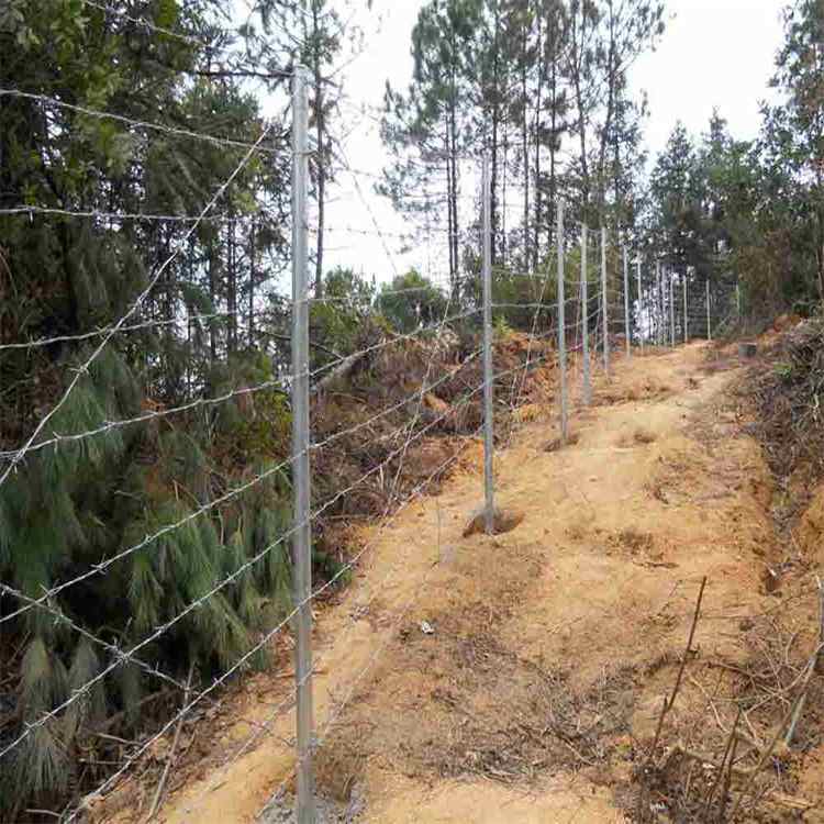 刺繩護欄網主要分鍍鋅、浸塑兩種,是以立柱加刺繩制作而成,主要用于高速公路、軍事管理區、封山育林、植物園、區域分界、游覽圍欄等。其產品主要優點是安 裝簡易,施工速度快。