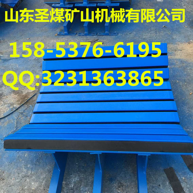 落料緩沖床是用在帶式輸送機導料槽下方,落料點膠帶的下面。它采用摩察系數小的超高分子工程塑料制成,并通過高彈性的橡膠緩沖條固定在鋼支架上,依靠對輸送帶的有效支撐及吸收物料對輸送帶的沖擊,降低了輸送帶的磨損,延長了輸送帶的使用壽命。它可有效替代緩沖床托輥不傷膠帶,緩沖效果良好,穩定,且防止膠帶撕裂及導料槽處散料及粉 塵的外溢。為廣大火電廠,煉鋼廠,玻璃廠,水泥廠,礦山及港口碼頭等的膠帶輸送機系提供良好的緩沖環保設備。