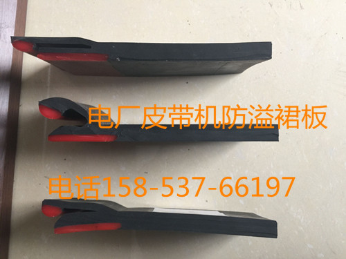 導料槽防溢裙板為雙層結構,通過一套快速壓緊裝置(蝶形螺母式或者手柄式)安 裝在皮帶機導料槽的下沿,用于輸送帶與導料槽之間密封。