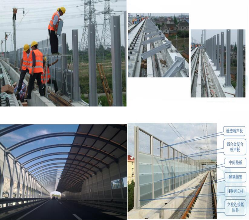 高鐵聲屏障的設計已較為充分地考慮了高架高速道路、城市輕軌、地鐵的風載、交通車輛的撞擊安 全和全天候的露天防腐問題。它外形美觀大方,制作精致,運輸、安 裝方便,造價低,使用壽命長,特別適用于高架高速道路和城市輕軌、地鐵的降噪使用,是現(xiàn)代化城市最理想的隔聲降噪設施。