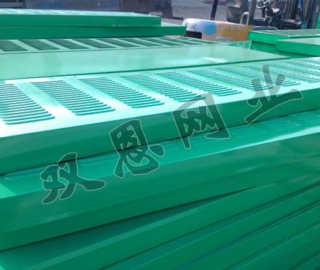 金屬百葉窗聲屏障也成為百葉窗聲屏障: 屏體面板板材上百葉孔,聲波撞到聲屏障,就會陷到孔內,而板材中間是一層厚厚的吸音棉,噪音陷進里面去不容易出來,吸音棉外敷無堿 恨水玻璃布,這類百葉型設計充分考慮防水、防塵,其角度設為45度,在揚塵或淋雨環境中吸聲性不受影響,構造已設置排水措施,避免構件內部積水。屏體表面可進行噴塑處理,防腐性強,使用壽命長。