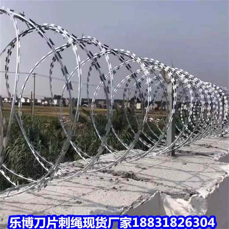 河北熱鍍鋅刀片刺繩現貨廠家吉林監獄防護隔離刺網舒蘭鐵路防護刺