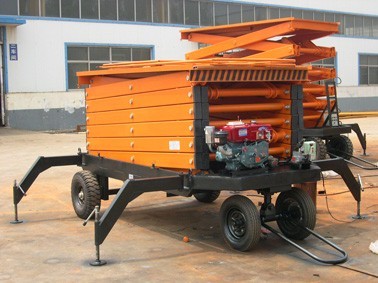 移動柴油機升降機是用途廣泛的高空作業專用設備,當工作場所工作人員少或無其他牽引設備配合的工作環境就可選用該產品。當它的剪叉機械結構,使升降臺起升有較高的穩定性,寬大的作業平臺和較高的承載能力,使高空作業范圍更大、并適合多人同時作業。升降動力分為220v或380v電源,柴油機,或電瓶動力源,特殊環境也可采用防爆泵站及防爆電器,升高4——22米,載重0.3—3噸。采用意大利和國產液壓泵站,臺面使用防滑絕緣扣板,具有防滑,絕緣、安 全,請放心使用。它使高空作業效率更高,安 全更保障。