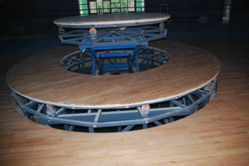 采用升降舞臺可實現雙層臺面的升降?筛鶕枰嗫善闯呻A梯形、多景、多層次階梯,組成升降臺群,,能在行程范圍內組成不同的臺階,還可以組合成旋轉升降,使舞臺在升降中旋轉或旋轉中升降,豐富舞臺多功能效果。