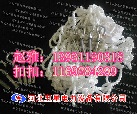 七、我公司的窨井防護網在國內采用耐腐工藝生產,使我公司的窨井防護網具有耐腐蝕、耐污染、單根防護網繩的強力高達1600n,并采用了三股單繩編織而成,所有節點均固定一點,使我公司的窨井防護網更加堅強牢固,結實持久,承重力高達800公斤以上。