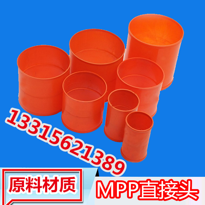 我廠生產的mpp電力管接頭主要以原料為主,不摻任何再生料。質輕料厚。mpp電力管接頭的主要型號有:直徑90mm 110mm 125mm 139mm 160mm 167mm