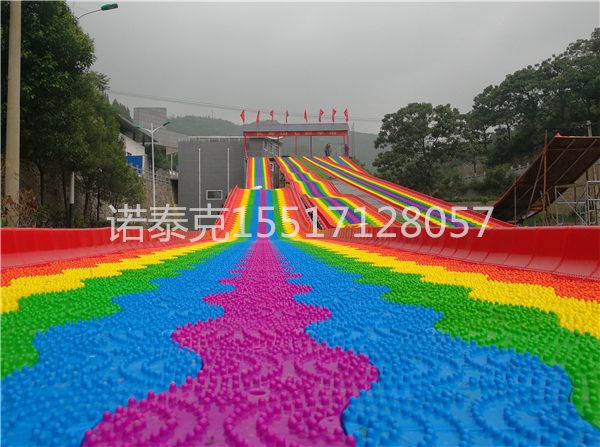 在中國,大部分地區都屬于冰 雪資源短缺的地域,隨著近年來全球環境變暖,冬季的降雪量逐年下降,冰 雪項目的開展必然要考慮其它的出路。而七彩滑道的出現為無雪季贏得了商機。彩虹七彩雪圈滑道是諾泰克nortec廠家新出的一款旱地滑雪產品,因為它具有豐富多彩的顏色,能夠讓人看起來心情愉悅,更加吸引游客。