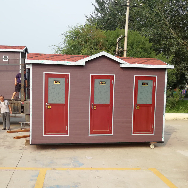 廁所整體鋼管焊接,采用100*50*3,50*50*3,50*25*3mm鍍鋅鋼管(根據廁所大小搭配使用)。屋頂先鋪設50mm保溫板,再用10mm厚木膠板做底,再鋪設sbs油氈防水材料,最后鋪設一層瀝青瓦。