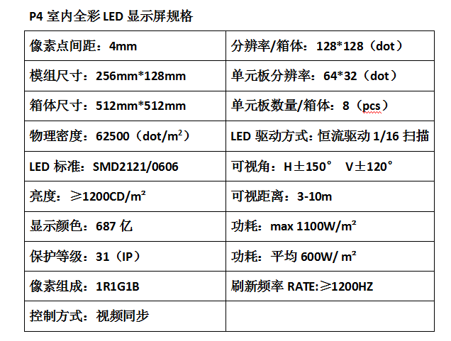p4室內全彩led顯示屏規格像素 點間距: