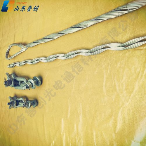 組成:內層護線條預絞絲,中層預絞絲,外層絞絲 ,u型環連接螺栓 。內層護線條預絞絲:材料選用鋁包鋼絲,與oppc光纜所有的鋁包鋼絲為同一材料,預絞絲內壁通過高強度高分子水溶性環保膠粘劑 粘有一層金鋼沙,以增加與光纜間的摩擦力,預絞絲在生產時被預制成四個子束,便于快速安 裝,中層、外層耐張線夾預絞絲材料選用;鋁包鋼絲,預絞在工廠加工時被制成一束并在內壁粘有一層牢固的白剛玉砂,已達到對光纜減小壓力的條件下增加耐張的握力,用戶根據選用規格表按光纜徑。,光纜工作張力(線夾使用張力)選配適合的張力線夾。