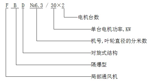 1.fbdno5.6/2*11礦用隔爆型壓入式對旋軸流局部通風機型號示意圖