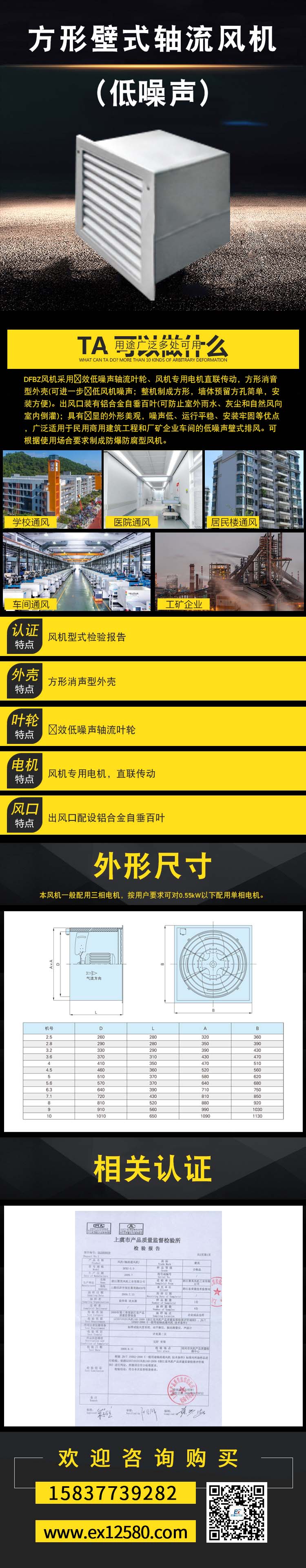 低噪聲方形壁式軸流風機
