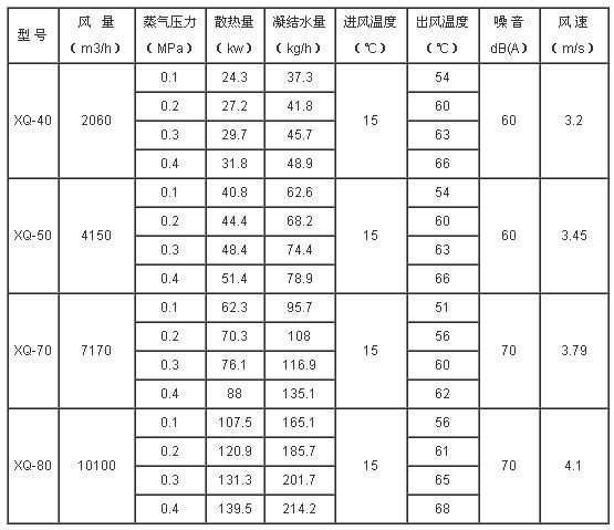 二、xq型蒸汽暖風機技術參數(shù):
