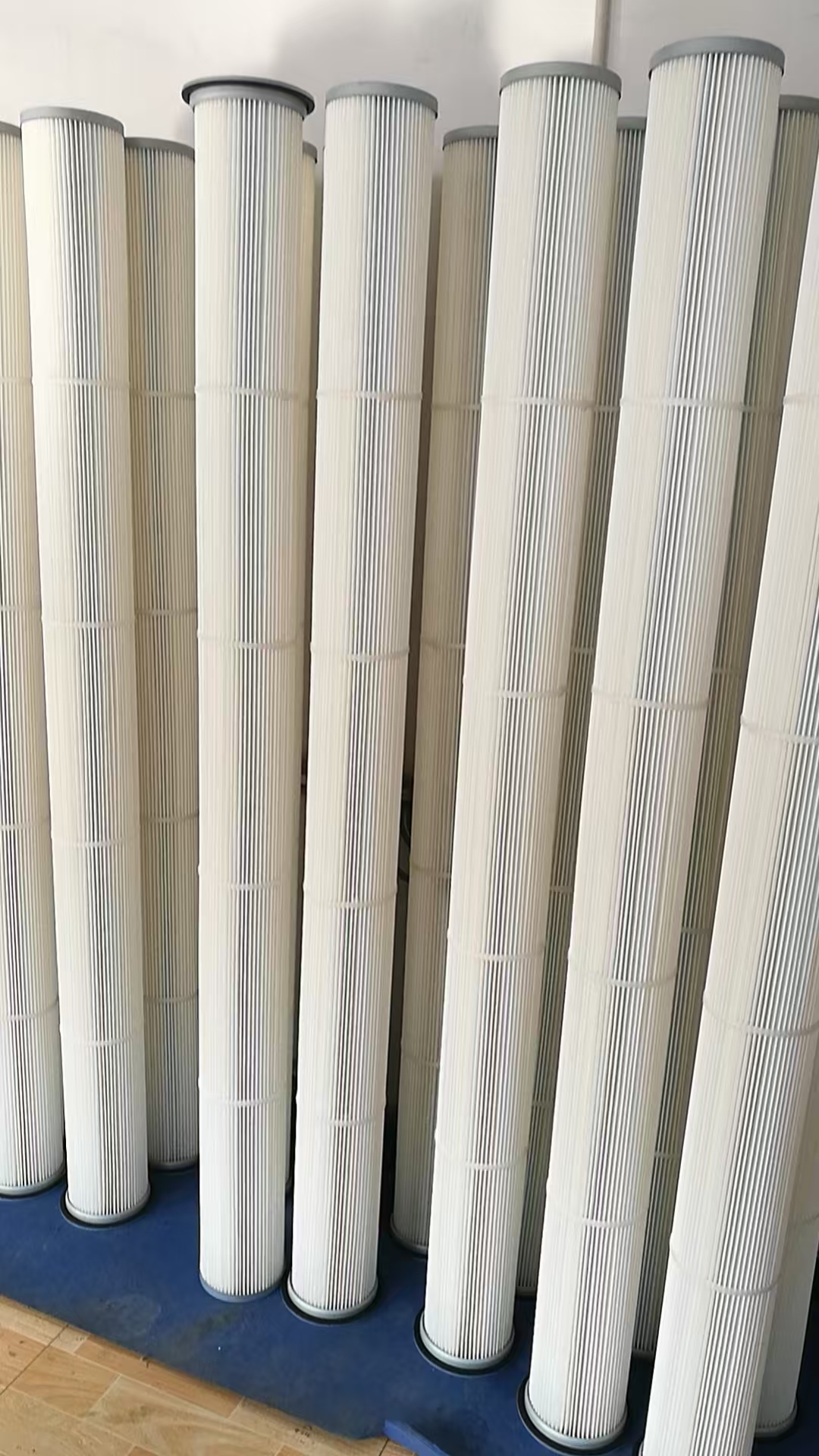 替代布袋聚氨酯端蓋除塵濾筒1、濾筒是由240g長纖維聚酯無紡布折疊成褶,采用國際先進的打折技術(shù),間隙均勻。褶間空隙大,夾角大,褶深而寬,清灰容易,過濾面積比同徑同長的濾袋大2-5倍。濾筒接口采用超聲波焊接接縫技術(shù),保證不開裂、