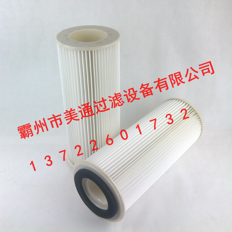 濾筒的品種較多,有細而長與粗而短之分。細長濾筒(如φ≤160,l=1~2m),其褶(如45褶)間空隙大、夾角大,褶少而淺,過濾面積比同徑同長的濾袋大2~5倍,清灰易而效果好;適用于濃度≥15g/m粉 塵的過濾除塵,過濾風速0.6~1.2m/min。粗短濾筒(如φ350,l=0.66m)直徑大、長度短、褶多(120~350褶)而深、褶間空隙小,過濾面積大,較之同徑同長濾袋面積大14~35倍,適于場地面積小、空間小的地方布置;但因褶角小,粉 塵易積聚,難于清灰,適于濃度≤5g/m粉 塵的過濾除塵,過濾風速不宜>0.6m/min。