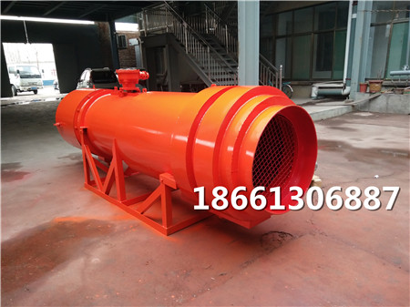 濕式除塵風機為水平安 裝,產品有腳支架和懸吊孔。在煤礦井下掘進工作面的使用中,可安 裝在巷道一側線或懸掛使用,并隨掘進機一起移動。