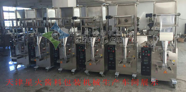 3、天津包裝機|天津醬料包裝機—豆豉醬包裝機采用立式攪拌,可連續自動完成制袋、計量、充填、封合、分切、計數等包裝全過程。