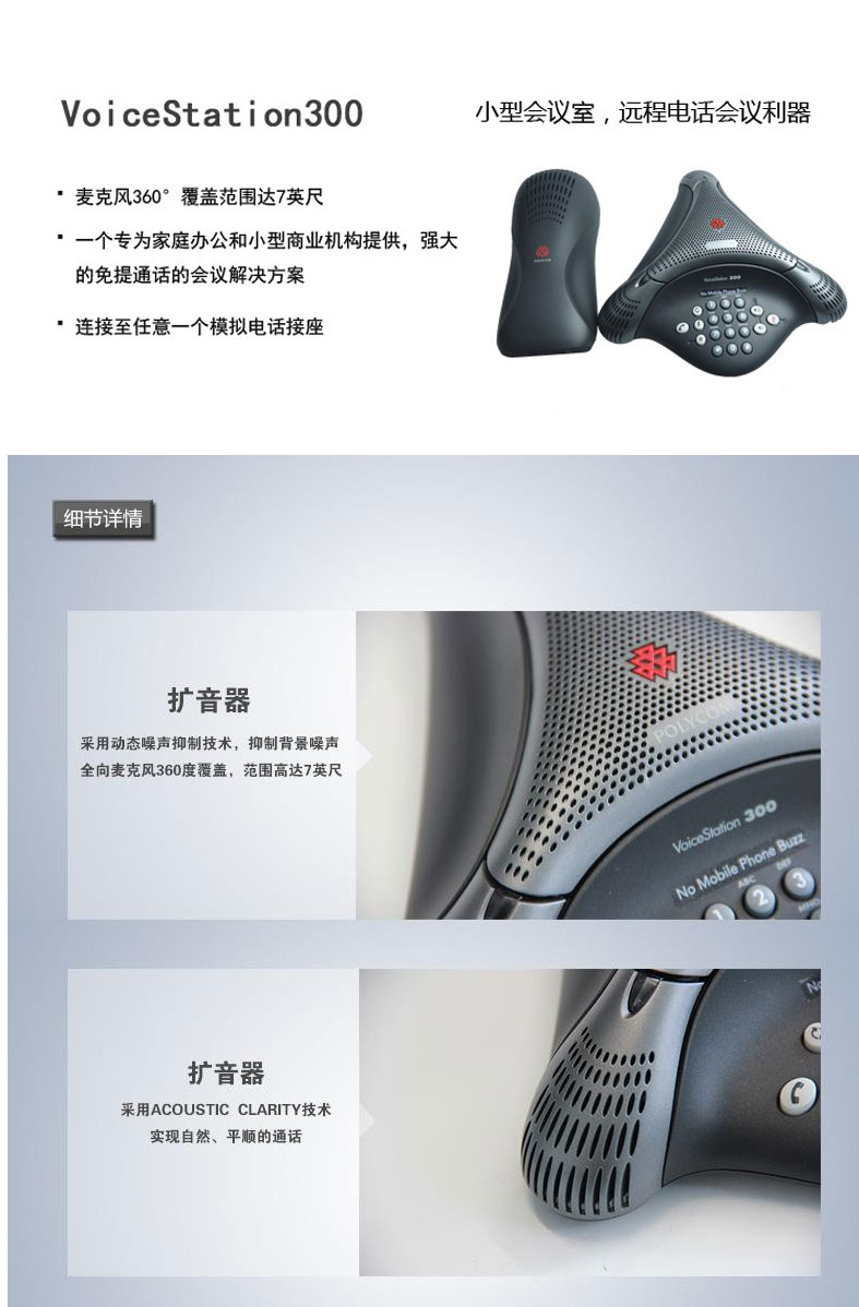 寶利通 polycom voicestation300 會議電話機廠家給出 的保守數據為3-4人小型會議室使用,拾音半徑為2.1米;經過多年實測經驗,可適用于10人以內,20平方左右的會議室,拾音半徑可達3米