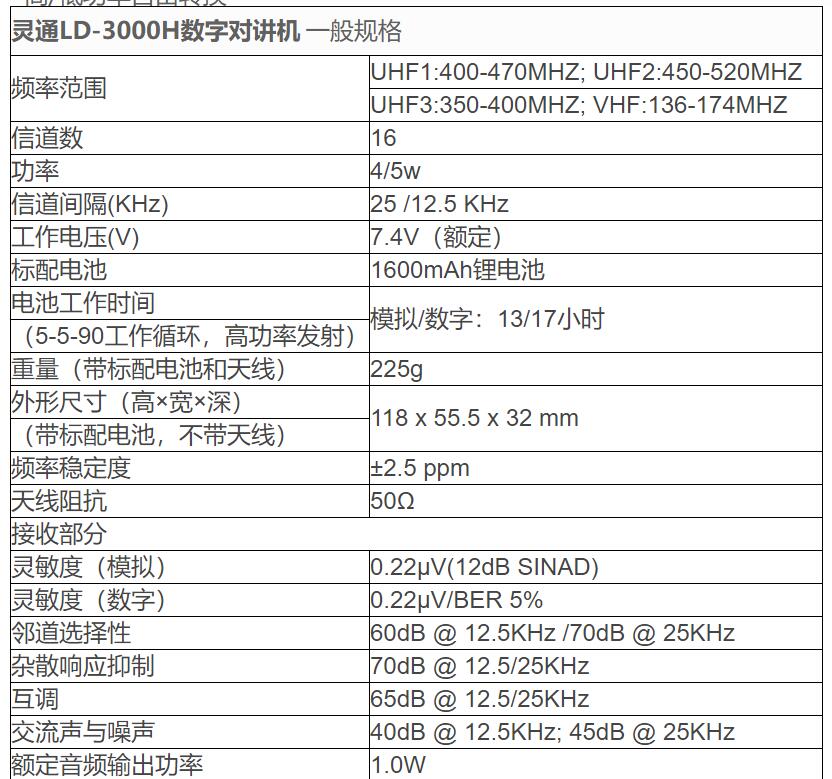靈通ld-3000h數字對講機