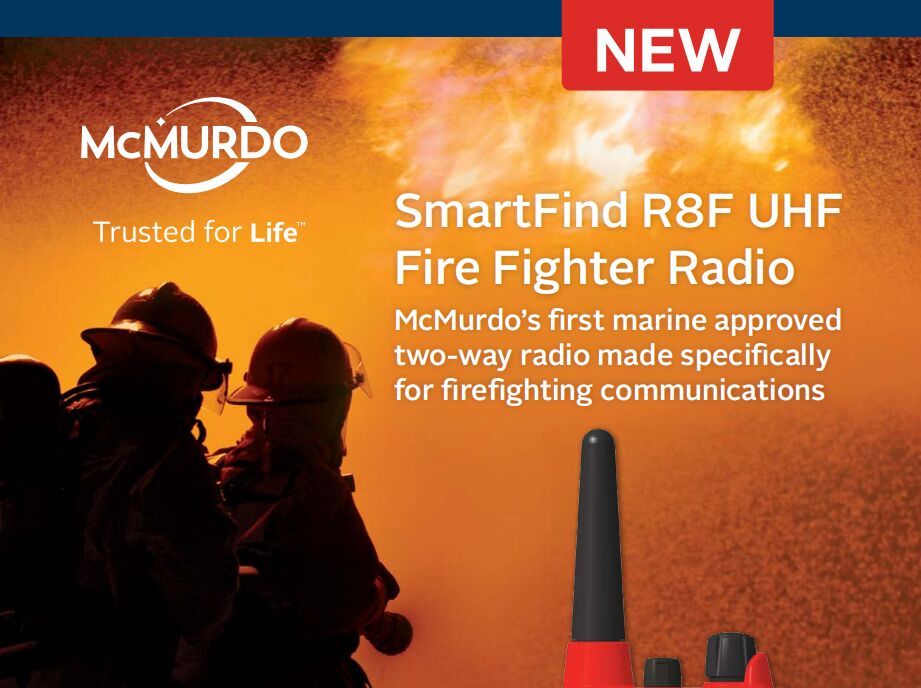 馬克默多第 一 個符合檢驗要求的專門用于海上消防通信的雙向無線電,smartfind r8f超高頻防爆對講機,真正安 全的雙向無線電,符合新的solas ii-2強制規定,用以改善海上消防安 全。