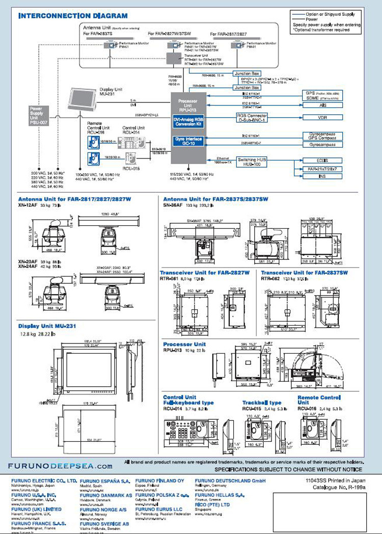 天線: far-2817 / 2827 : 4 f t 6.5 f t 8f t far-2837s : 10 f t 12 f t