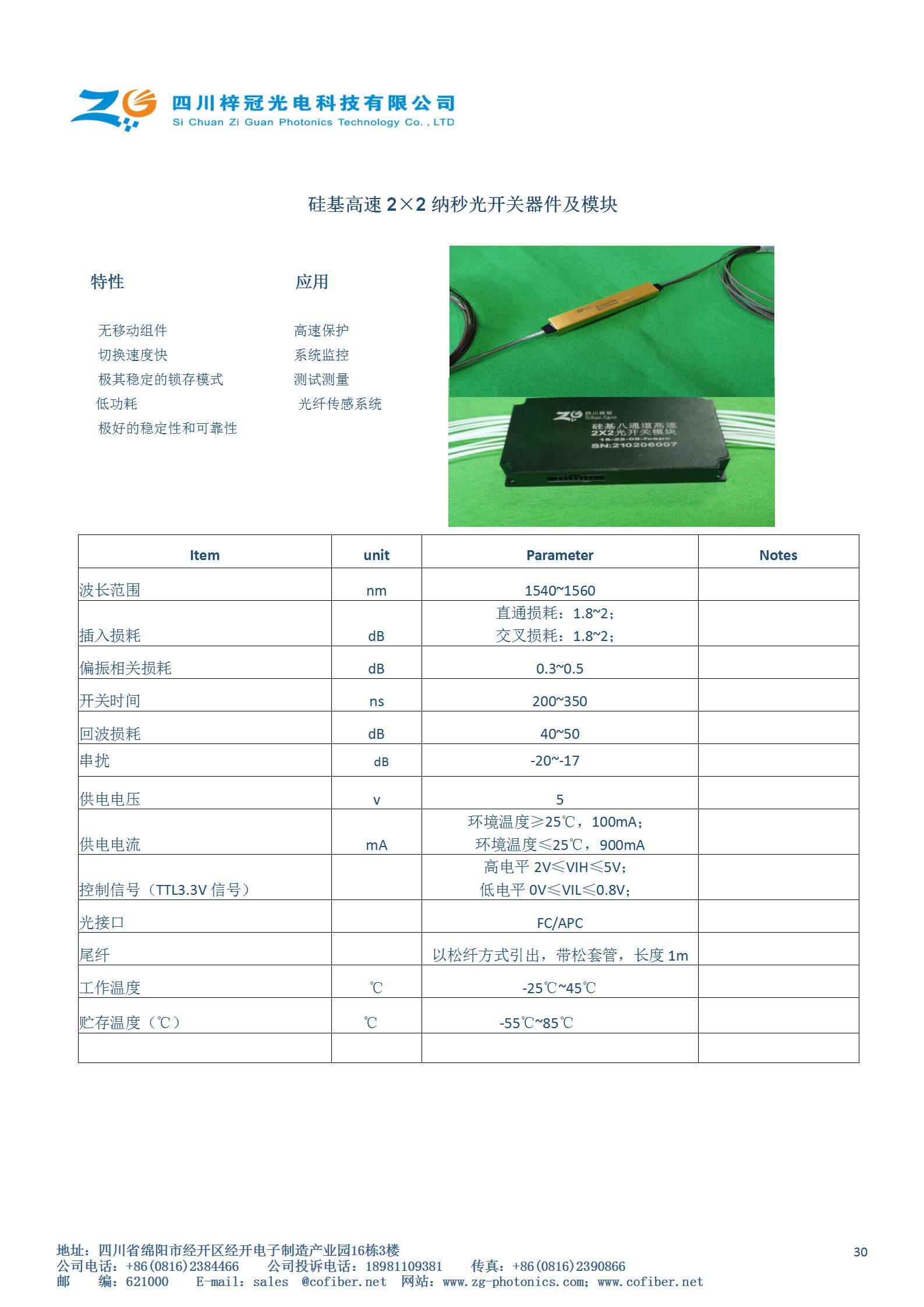 四川梓冠的高速光開關器件,是業界支具有靜態穩定能力的納秒級速光開關。其的靜態穩定能力方便用戶在使用時免除工作點控制環路的需要,使得高速光通道切換真正成為可能。