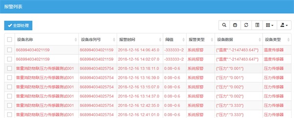 2、平臺(tái)應(yīng)用管理面頁:加入不同id編號(hào)的設(shè)備(如壓力、液位、溫度等)