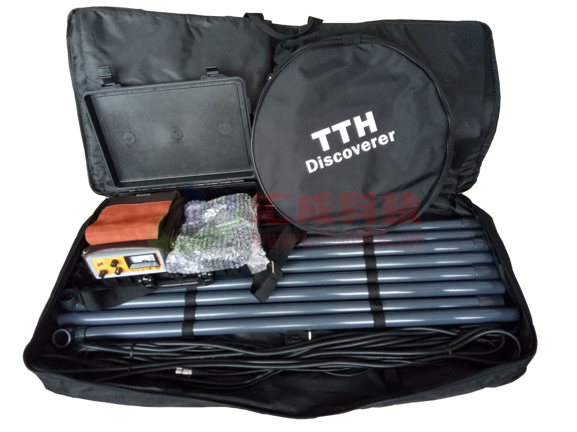 技術參數:體積:198mm*157mm*62mm重量:1500克(電池組包括在內)能量:16v/4ah操作時間:這些能量可工作12小時充電時間:快充5-6小時主機的使用: 主機里各電子元件在質量穩定的機架里相互協調,主機的表面有四個調節按鈕。reset 每當調節其它按鈕后或改變探盤的位置后或出現錯誤信號時,都要按一下這個按鈕確認。 mood調到off,機器關閉。 調到 batt,檢查電池組的電量情況,表頭會顯示電池組的供電情況,告訴你電池組里還剩下多少電量。調到 allm,它探測到任何金屬,遇到都會報警。調到 disc,它能識別不同的金屬,對于不同的金屬,它的表頭上 的指針會指向不同的數據。 freq 頻率調節器volume 調節音量指示燈 當disc這一檔捕獲物體的具體傳導性后,在指示燈剛剛好亮,指針指向某一具體位置時,金屬的種類就知道了。指示燈和指針會一直顯示金屬的種類直到把探盤從金屬上面移開。 該主機上配有帶子,給人們掛在身上進行操作,這樣就不用手提著儀器了。電導圈的主要作用是排除礦化反應和鹽 類物質的干擾,尤其適合在水體和封閉洞穴等封閉環境中使用。 該小探盤的半徑為45厘米,用來探測中等尺寸的物體,適合中等范圍內的精確查找。該探盤適合用來探測中等尺寸價值較高的寶物,比如說金元寶等物體。使用時該探盤要與地面平行,并保持2-5厘米的距離。調節該探盤是,應將他保持在與地面5厘米的高度,調節好后按reset按鈕,按3秒鐘。