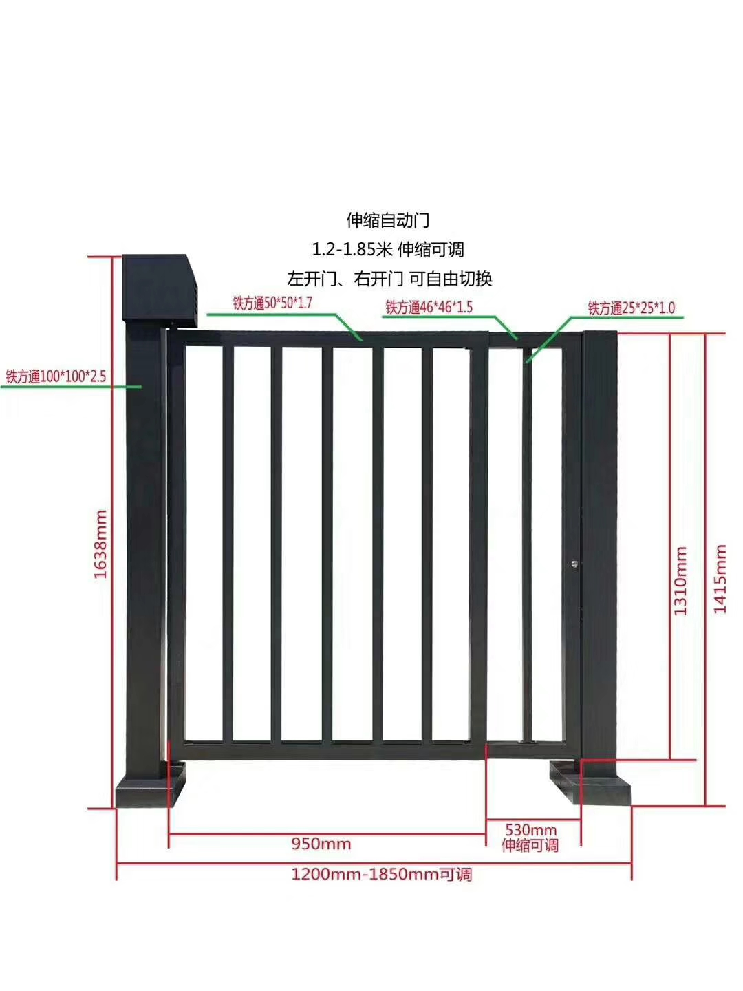 ●考慮小區通道的寬度不一問題,設計門寬一定尺寸可伸縮,根據需要調節后固定